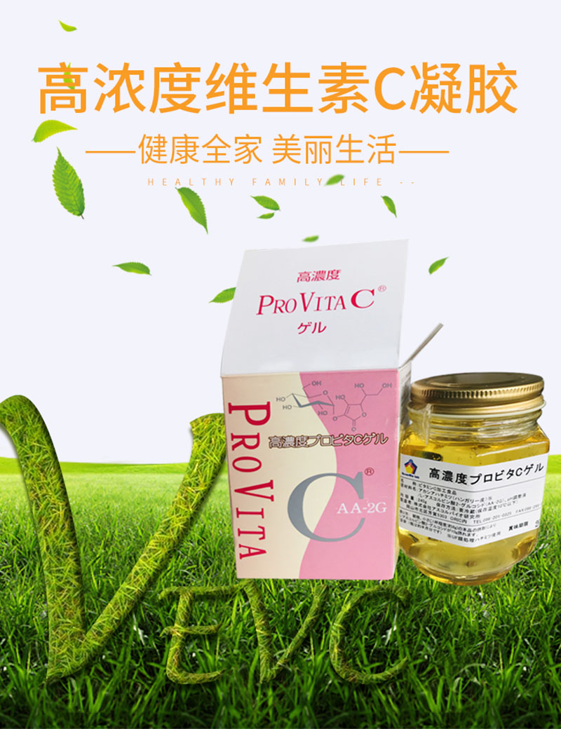 高濃度維生素C凝膠,是高濃度的維生素C誘導體(L-丙烯酸2-葡萄糖:略AA-2G)凝膠狀配合蜂蜜做為保健食品對身體特別好。根據(jù)近幾年很多利用維生素C的點滴法對癌癥的成果所研究出的高濃度維生素C凝膠口服沖劑。